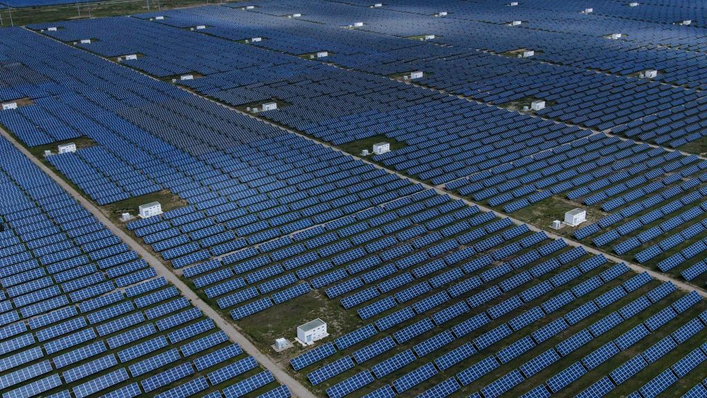 深蓝色的光伏板熠熠生辉,风力发电机的叶片迎风飞转,百米高的吸热塔和“镜子海洋”组成科技感十足的熔盐塔式光热电站……望着位于青海省海南藏族自治州共和县的绿色产业发展园,牧民吾金多杰没有想到,塔拉滩这片半荒漠化的“风沙之地”,如今却成为千万千瓦级的新能源基地。