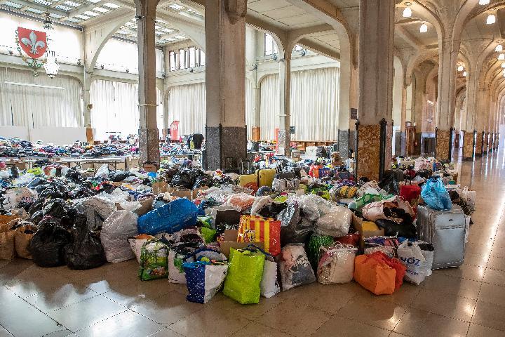 这是8月24日在法国北部城市里尔拍摄的市民为阿富汗难民捐赠的衣物。(新华社发,塞巴斯蒂安·库尔吉摄)
