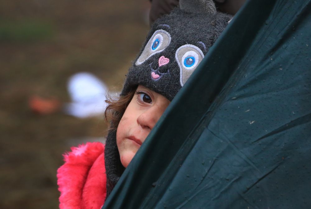 这是11月14日在白俄罗斯靠近波兰边境的难民点拍摄的儿童。(新华社发,任科夫摄)