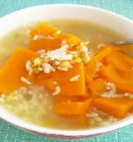 中队的早餐有时会喝南瓜粥,味道和奶奶做得差不多。