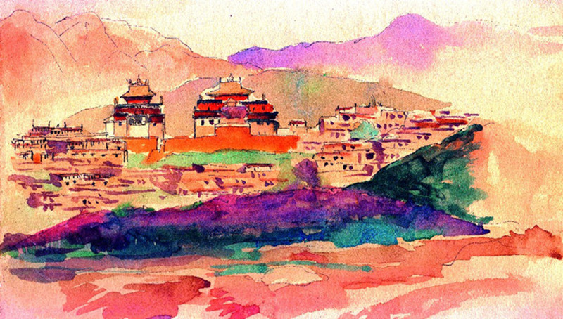 ▲中甸的归化寺 李霖灿手绘