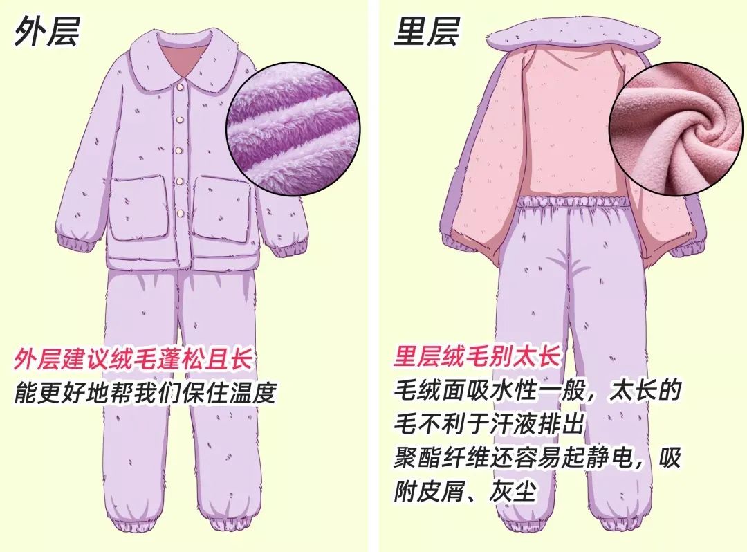 但要注意的是——厚睡衣的里层、外层,并不都需要长且蓬松的绒毛。
