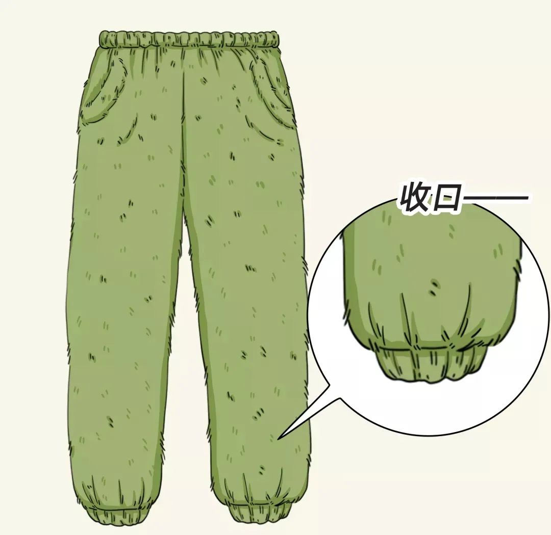 ➋ 注意剪裁:袖口、裤口选有收口工艺的。