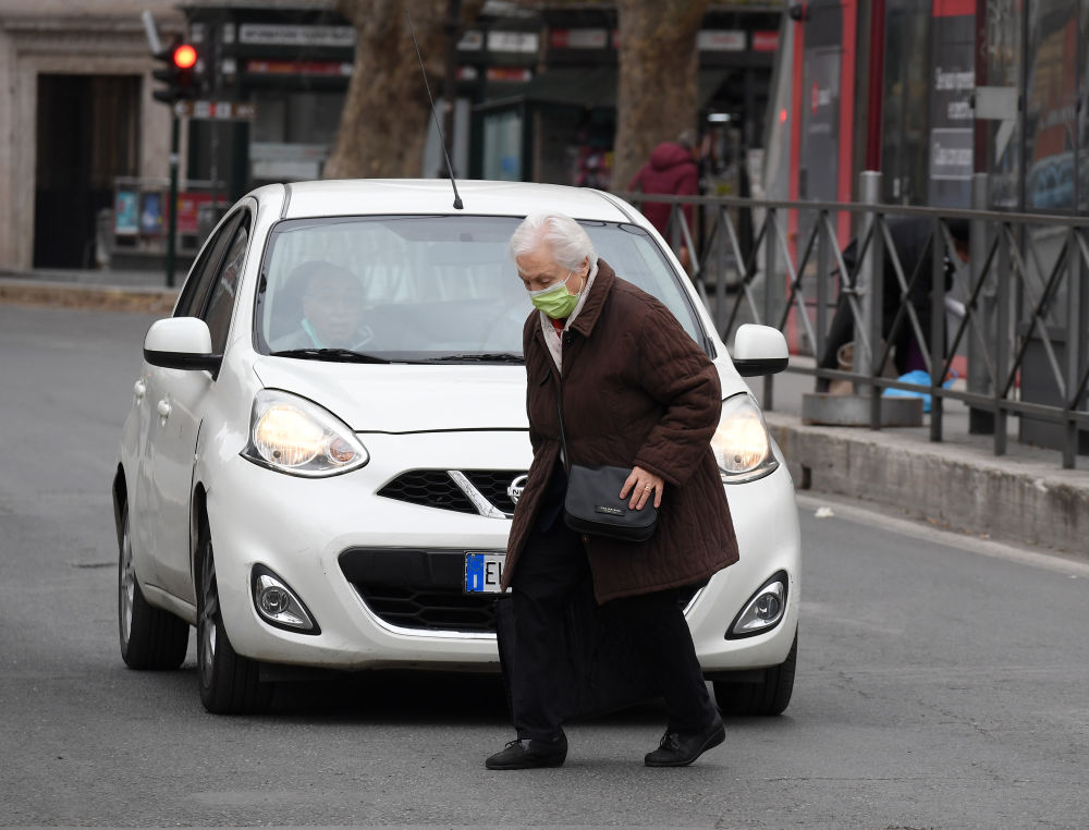 2020年3月13日,在意大利首都罗马,一位老人戴口罩出行。(新华社发,埃莉萨·林格里亚摄)