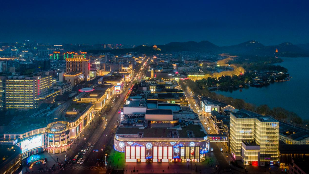 湖滨步行街毗邻风景秀丽的世界文化景观遗产西湖风景名胜区,是杭州的RBD核心区。以步行街区为核心,解放路与延安路为两翼,形成了“一花一叶”数字生态商业格局。作为首批“全国示范步行街”和浙江省内唯一的国家级步行街,街区紧扣“最人文、最时尚、最智慧”的整体目标,从文化历史、功能品质与综合效益三大维度提升整体形象。