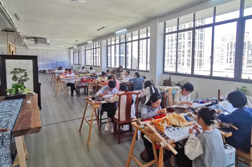 杭州映山静水刺绣馆杭绣-江南传习所通过组建刺绣传播团队,多方面宣传杭州刺绣的技艺魅力。手工,打磨的是人的心性,是对时间的尊重与敬畏,是时光和心意的美妙叠加。传习所常年开展刺绣体验活动,对杭绣的普及和传承作出了巨大的贡献。