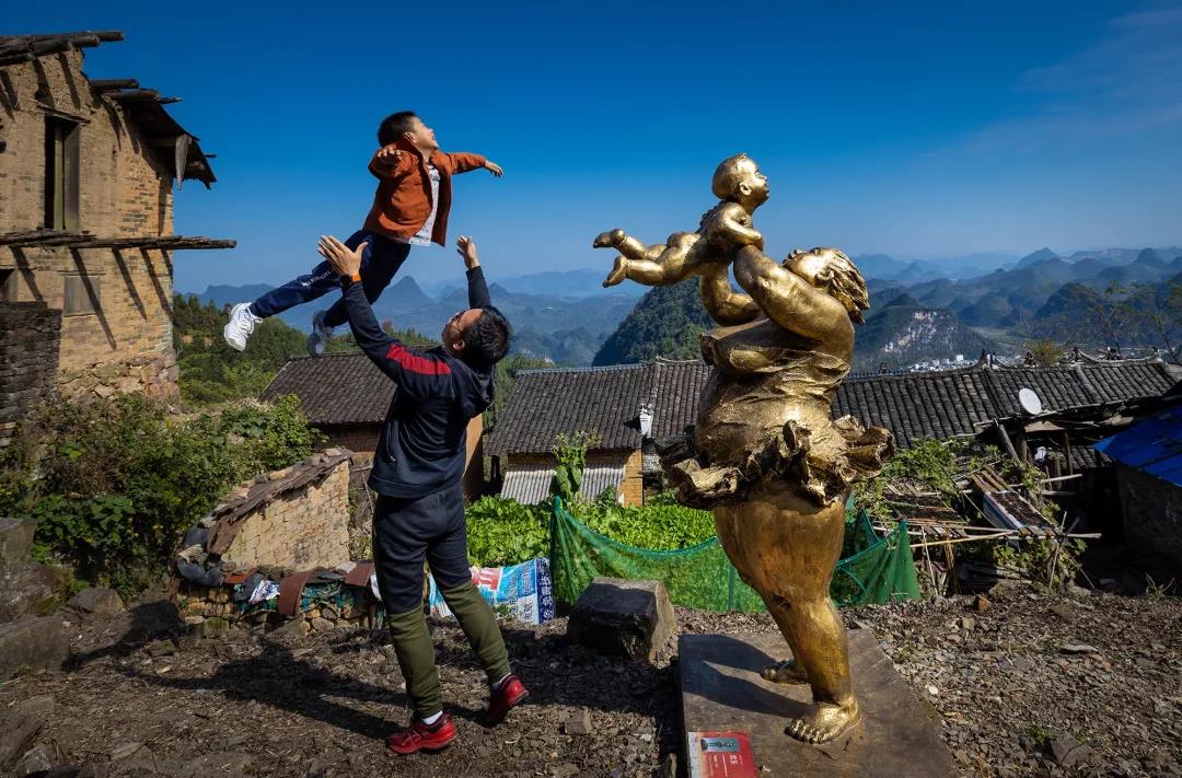 一尊尊雕塑恣意散布在田间地头,悠然自得,为千年瑶寨增添独特的人文气息,也为村民和来自各地的游客带来一场艺术盛宴。