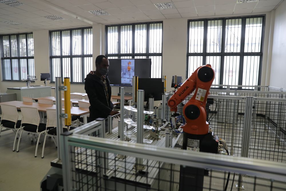 这是4月28日在埃塞俄比亚首都亚的斯亚贝巴拍摄的埃塞俄比亚鲁班工坊。埃塞俄比亚鲁班工坊揭牌仪式28日以在线形式在埃塞俄比亚技术大学和天津职业技术师范大学两地举行。中埃双方表示,期待鲁班工坊为促进埃塞职业技术培训和助力中非合作作出贡献。(新华社记者汪平摄)