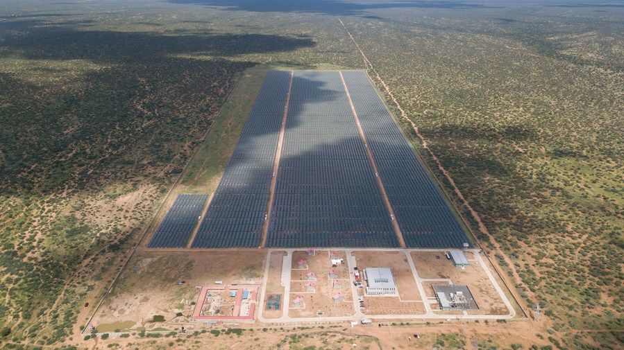 肯尼亚东北部加里萨郡,地处干旱炎热的沙漠地带,密集排列的太阳能板组成了中企承建的东非最大的加里萨光伏发电站。据了解,该电站年均发电量超过7600万千瓦时,可满足约7万户家庭、38万人用电需求。
