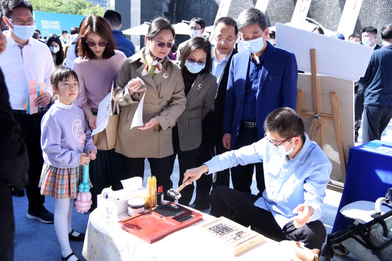 11月27日,深圳市第五届“阅在深秋”公共读书活动在深圳图书馆水幕广场圆满举行。光明区图书馆以“阅见光明·智创未来”为主题,开展了丰富多样的智慧阅读文化活动,小太阳i阅读系列故事、书香亭借阅体验、手绘光明、诗词拓印等,吸引了众多的市民参与体验。在活动中,文化与科技、传承与创新、互动与体验于一体,充分展示光明图书馆智慧阅读新生态,彰显光明区建设世界一流科学城及深圳北部中心的文化软实力。