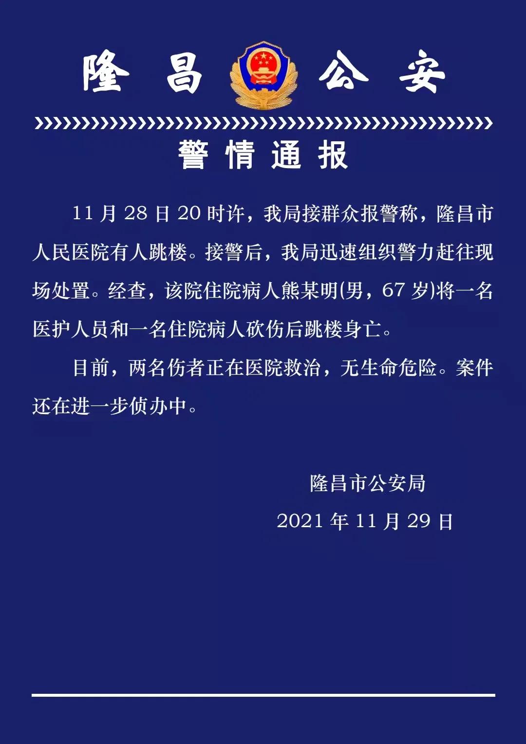 四川一67岁住院病人砍伤医护和病人后跳楼身亡