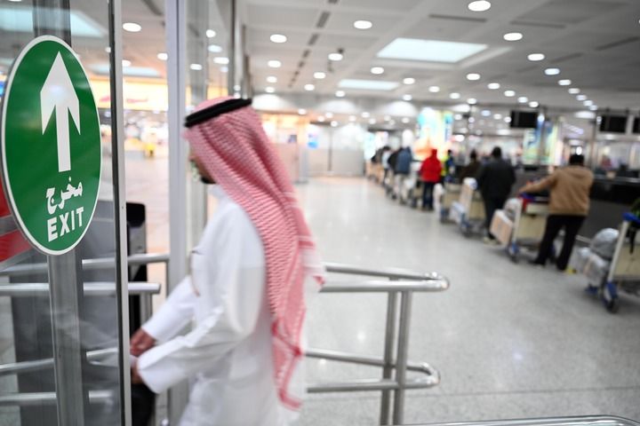 11月28日,在科威特费尔瓦尼耶省的科威特国际机场出发大厅,一名旅客办理完登记手续准备登机。科威特政府27日宣布,将暂停与南非等9个非洲国家的商业直航航班,以防范南非等国近日报告的新冠病毒新型变异毒株输入。新华社发(阿萨德摄)