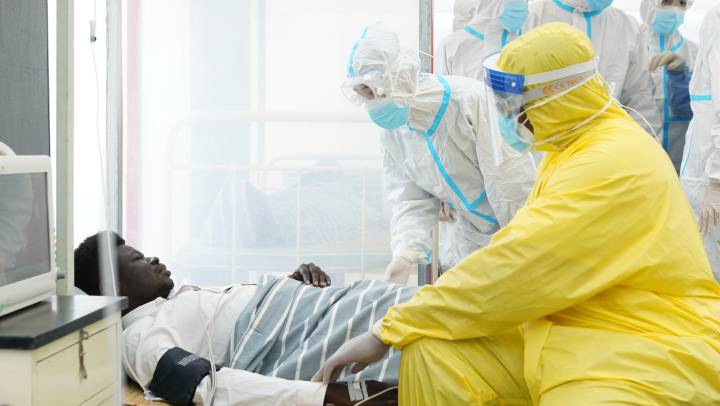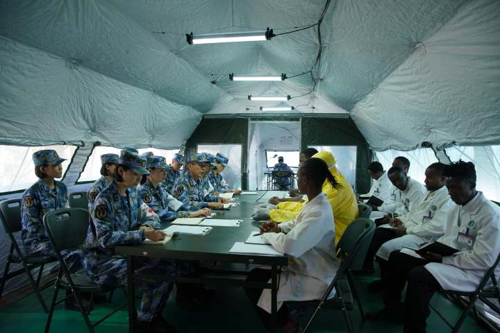 电视剧《和平之舟》,“和平方舟”号医院船医护人员在塔桑达救治当地病人。
