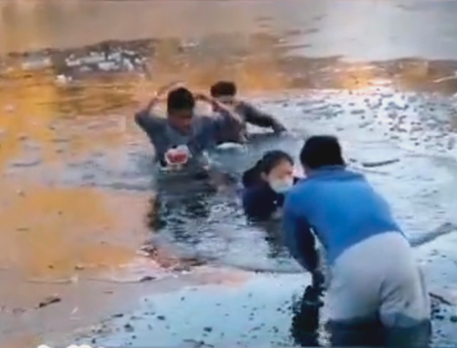 原标题:女孩快被淹到头顶,他们“手肘砸冰”救人!学校回应了……