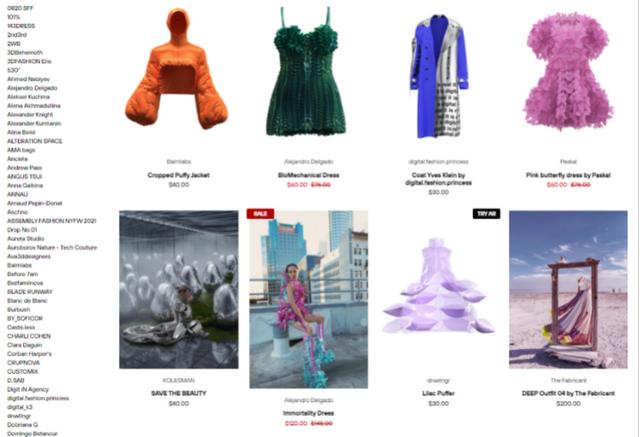 无独有偶,虚拟服饰也搭乘“元宇宙”的快车,迅速成为市场焦点。著名时装品牌Ralph Lauren与虚拟化身提供商Zepeto合作发售虚拟数字系列服饰,巴黎世家与在线游戏《Fortnite》合作推出虚拟及实体服饰……在全球最大的虚拟时尚平台DRESSX上,合作的设计师超过100个,销售的虚拟时尚商品达数千款。天目新闻记者浏览网站发现,商品的价格从21美元到1400美元不等(约合人民币134. 1522元至8943.48元)。