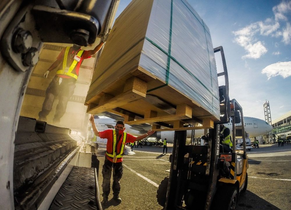 11月17日,工作人员在菲律宾马尼拉机场运输中国科兴新冠疫苗。(新华社发,乌马利摄)