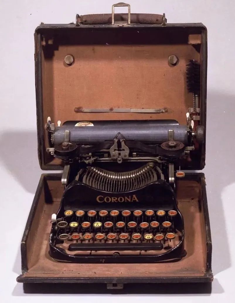 这台看起来十分精巧别致的老式“CORONA”牌英文打字机,长28.5厘米,宽25厘米,高12厘米,由692个零部件组成。打字机外与一只手提木箱相连,闭合时外形就像一只小手提箱。它由时任孙中山英文秘书的吴弱男在英国购买。