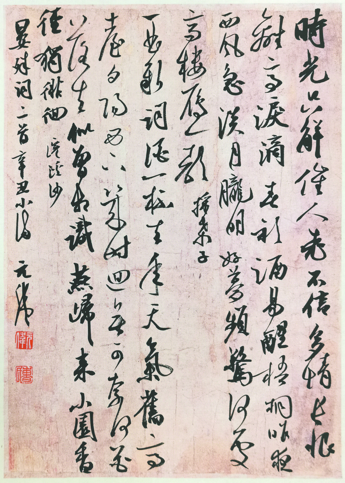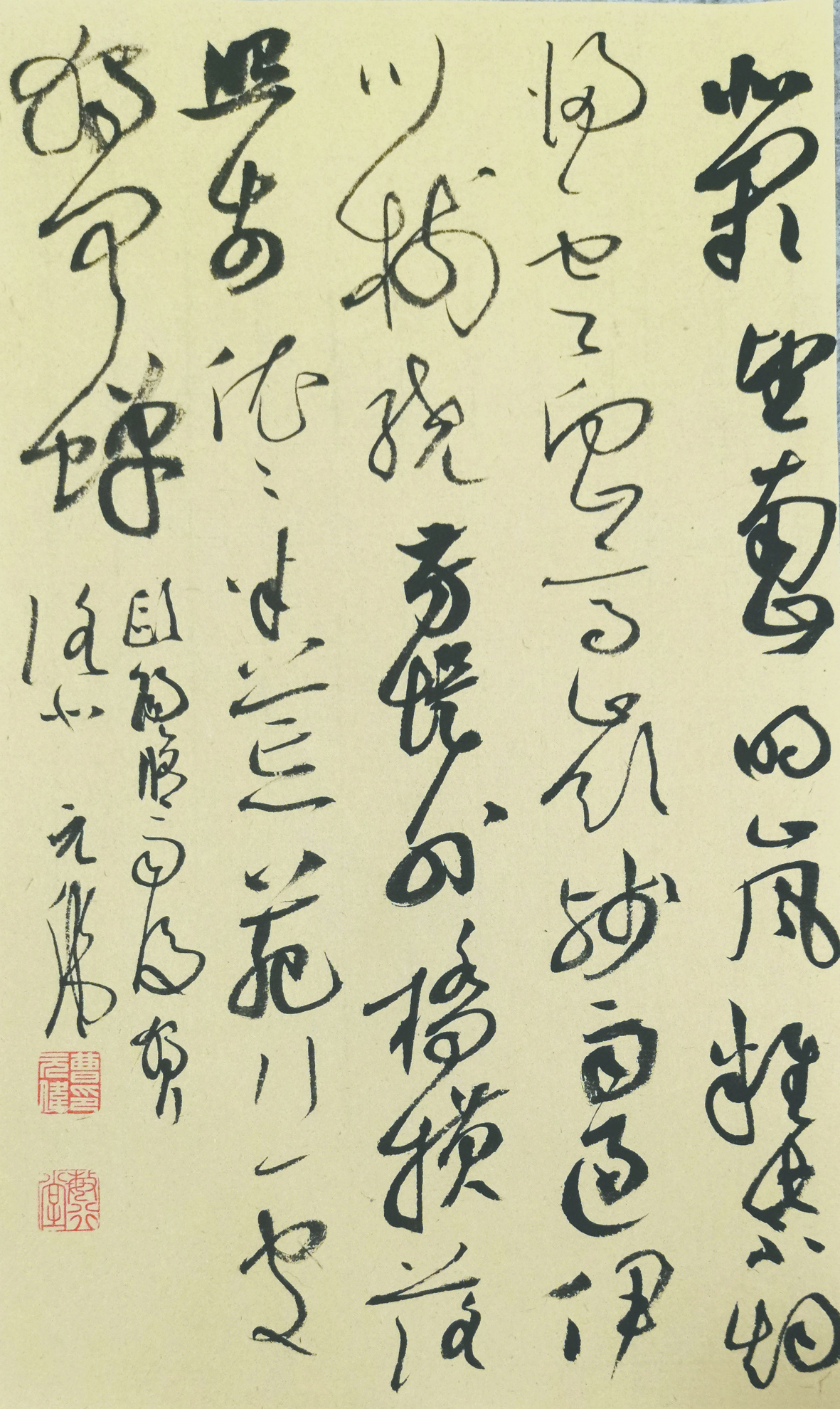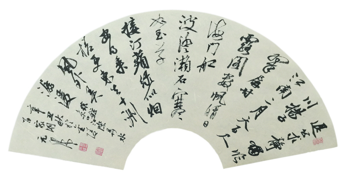 他视书法是“一个人灵魂散步的地方”。遨游在这种诗意的灵魂栖息地,深感经典是时代酿成的酒,心存敬畏的他20多年来熟读大量的历代诸家法书,选择行书入帖,临习“二王”、杜牧、陆柬之、米芾、薛绍彭、赵孟頫、杨维桢、王铎等法书,在此基础上主攻草书。“二王”、旭素、孙过庭、黄庭坚、王铎均是他心仪摹写的偶像。他于《大观帖》用功最久,并兼习晋唐小楷与汉隶碑版。