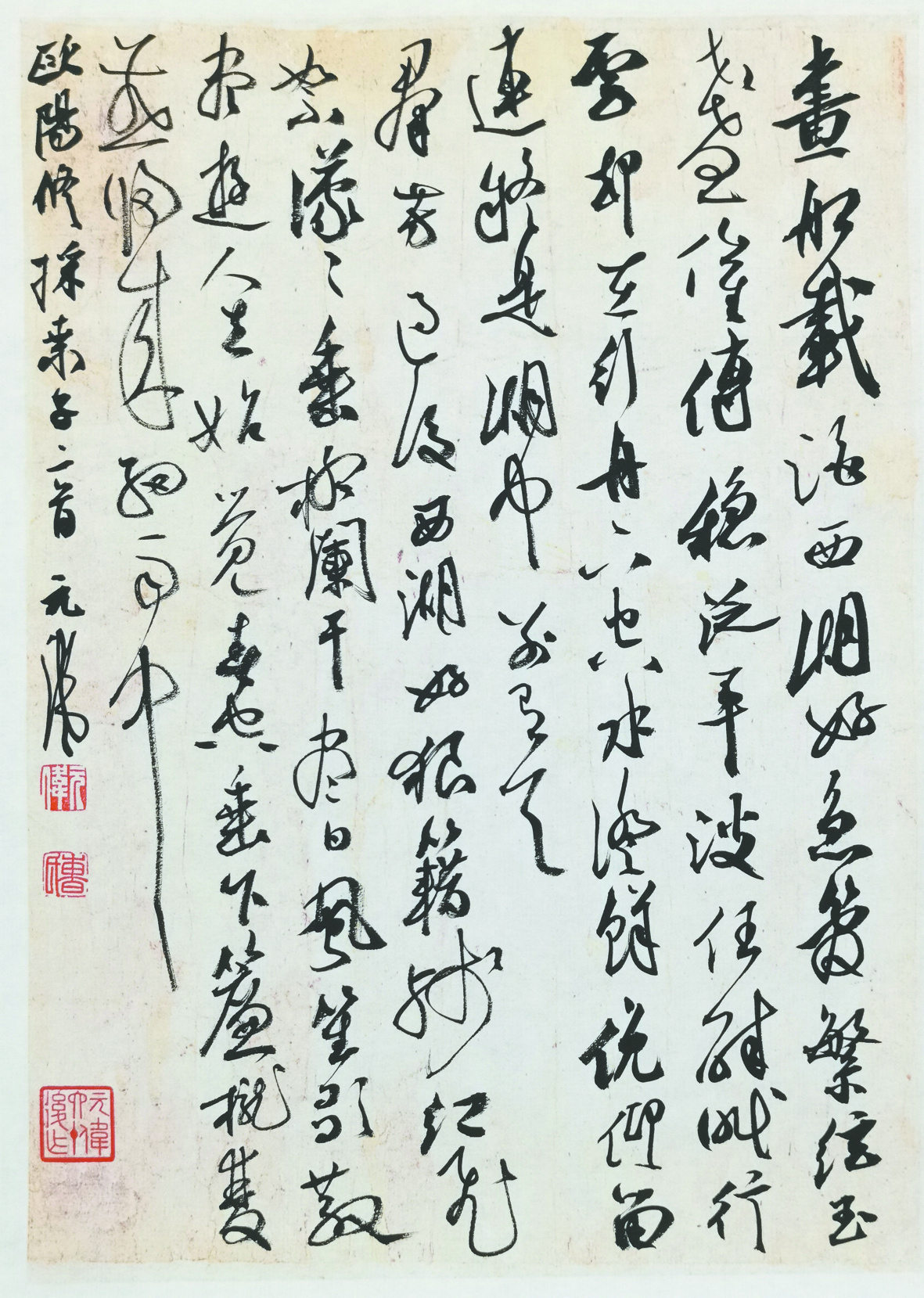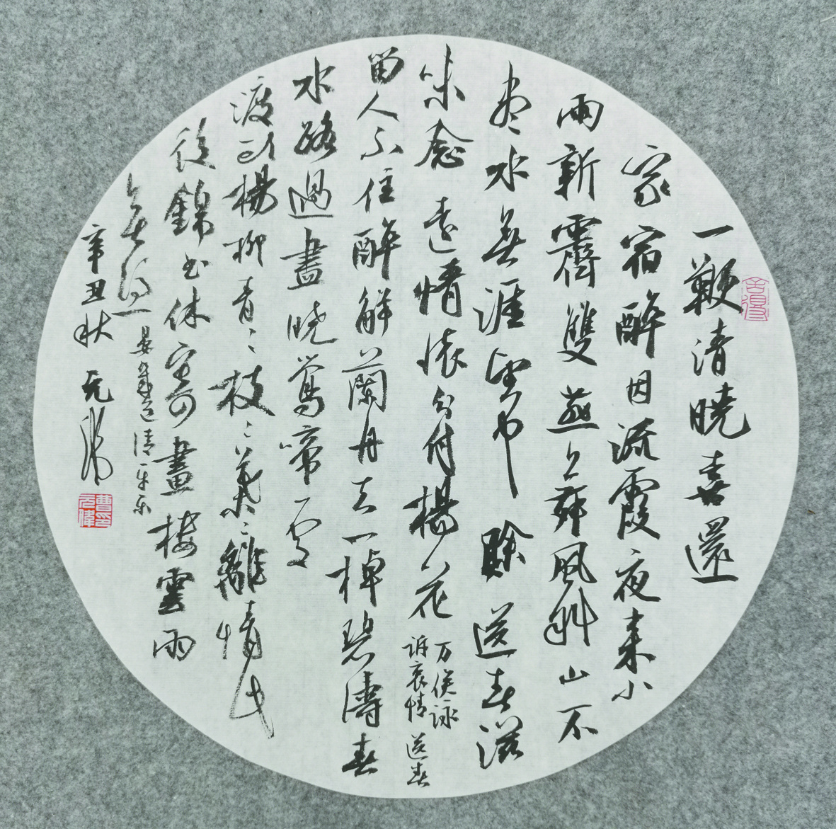 元伟兄的书作,取法清晰,虽诸体兼修,但以行草为主。他的行草书,上溯晋韵古质,中寻唐宋遗风,下探元明清意,脉胳清晰。观其近作,取法中有二王、有苏米、有赵孟頫、有杨维桢,甚至还有吴昌硕。他虽纵向取法,却能荟萃融通,自成风貌。这源于他具备了作为优秀书家的七种能力,即观察分析能力、笔法的掌控能力、字法的精准能力、墨法的呈现能力、空间的设置能力、章法的组织能力以及原创能力。而这七种能力的具备并非探囊取物般轻松,而是需要长期磨砺,临池不辍,善于求索,方可得之。元伟兄勤奋善学者也!