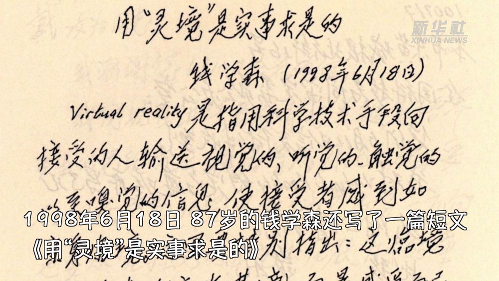 1998年6月18日,87岁的钱学森还写了一篇短文《用“灵境”是实事求是的》,其中写道:“我们传统文化正好有一个表达这种情况的词:‘灵境’;这比‘临境’好,因为这个境是虚的, 不是实的。”