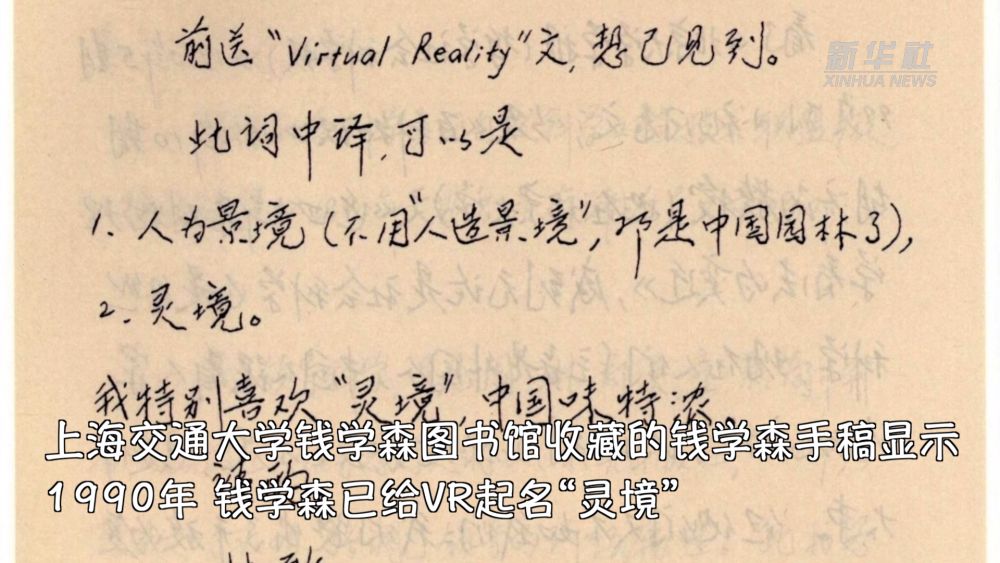 记者日前从上海交通大学钱学森图书馆看到部分钱学森的手稿,显示在1990年,钱学森已给VR起名为“灵境”,还写信解释说此译名“中国味特浓”。