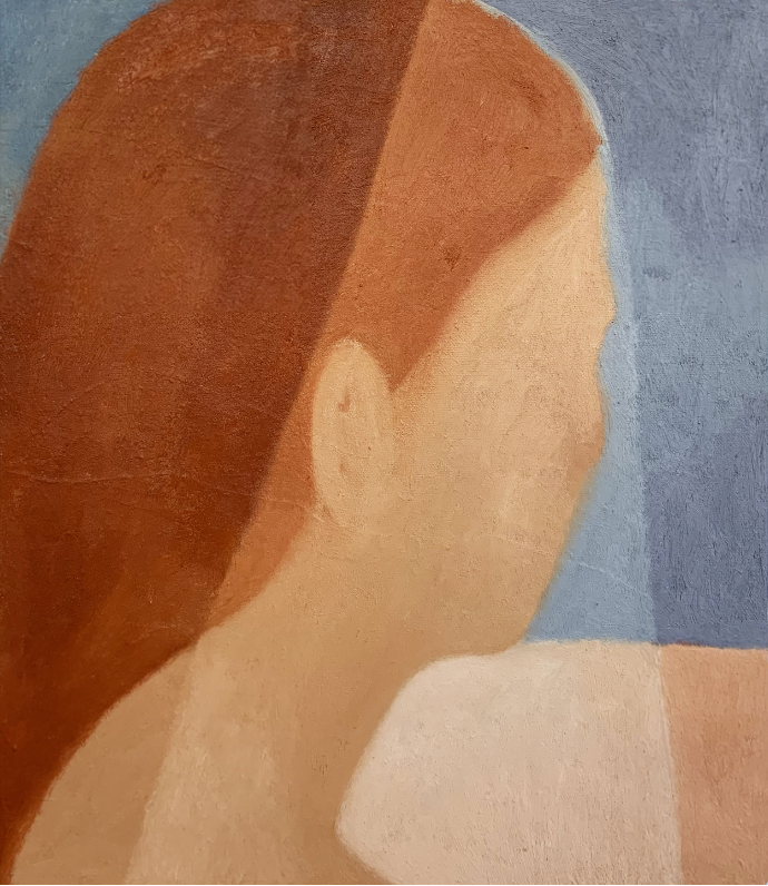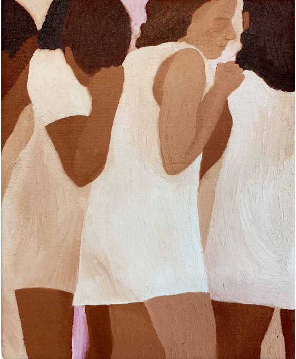 《面纱I》,2021年,画布上的油画,15 9/10×11 4/5×1 1/5英寸,40.5×30×3厘米。