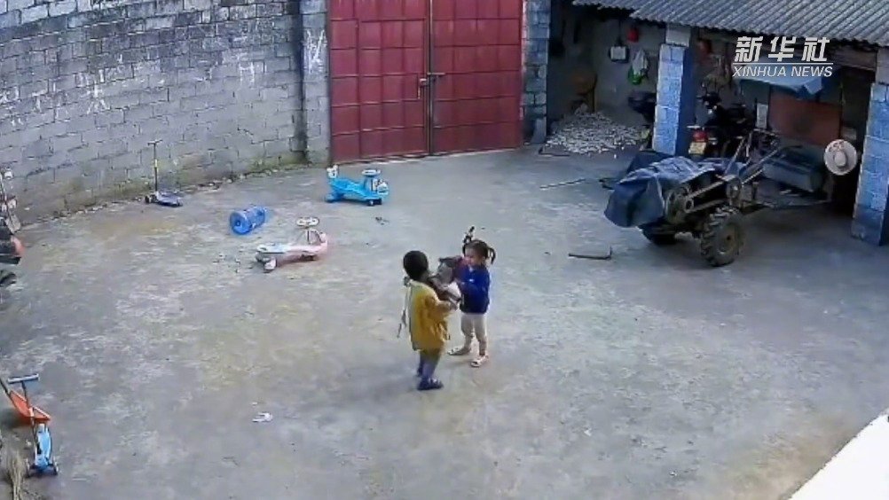 #勇敢小暖男#【#6岁哥哥护住被牛犊吓哭的妹妹#】近日,在广西来宾市武宣县,摄像头记录下了暖心一幕:两个妹妹在家中庭院玩耍,一只牛犊来到敞开的院门口“哞哞”叫,最小的妹妹吓得大哭不敢移动,大一点的妹妹飞奔去找哥哥。小男孩迅速带着小棍子冲出来,吓退牛犊后关上了门,兄妹三人温暖相拥。家长介绍,哥哥今年刚6岁,平时父母工作忙,哥哥一直帮忙照顾妹妹们。(记者农冠斌) 新华社的微博视频
