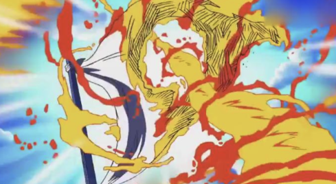 有超能力的路飞输了,他站在那里,带头喊,
