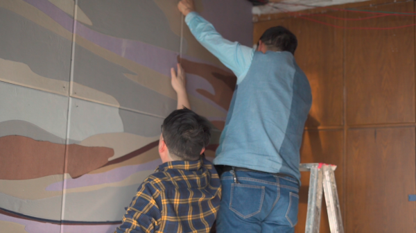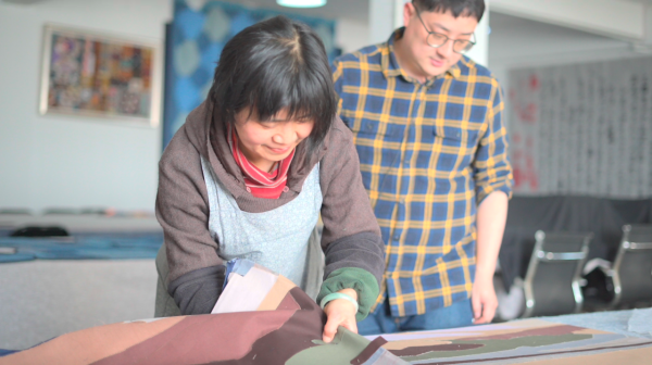 半天过去,水乡主题的拼布创作接近尾声,杨铁钢父子俩将制作好的20块拼布板搬到展示厅,一块接一块地往墙上固定。“看,这两块没对上。”杨铁刚皱起了眉头,“返工。”原来,因为布板存在一定的厚度,布块的拼贴会产生偏差,这需要在裁剪时预留出足够的空间。