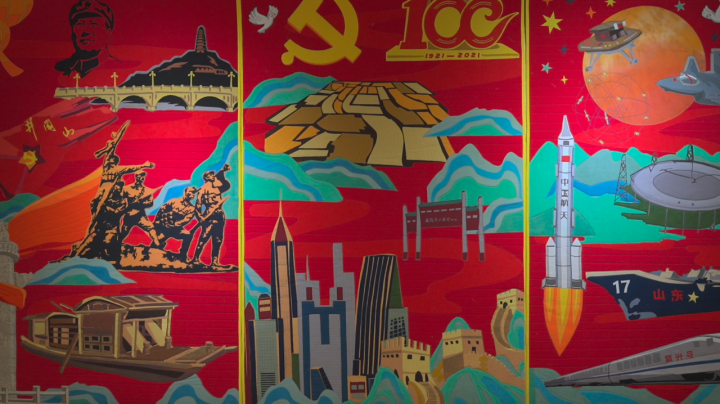“拼布的灵魂是设计。”在一幅刚完成的巨幅作品前,杨铁钢告诉我,工作室以中国人民站起来、富起来、强起来为主题,制作了这幅宽4米高2米的巨幅拼布作品。“光是设计就花了1个多月,工序比较复杂,制作了快两个月,反复修改了很多次。”听着杨铁刚的介绍,记者走近画作认真端详,只见绵密的针脚平整有致,明艳的色彩富有张力。