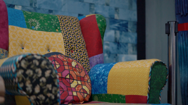 走进浙江民艺拼布博物馆,穿着一身拼布马甲的杨铁刚笑着迎了上来,“来了!走,先看看我们的作品。”记者跟着杨铁刚走上台阶,立马便被墙上那些琳琅满目、色彩明丽的拼布挂画吸引。走进展厅,一个个废弃的沙发用拼布包裹后摇身变成崭新的艺术品,充满了生活气息,展柜上还排列着精美的拼布玩偶、布包、布鞋等手工艺品,个个惹人喜爱。