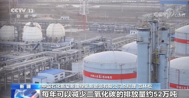 中国石化新星新疆绿氢新能源有限公司总经理 范林松:项目配套建设300兆瓦光伏电站,规划制氢产能2万吨每年,储氢规模是21万方。项目投产后,每年可以减少二氧化碳的排放量约52万吨。