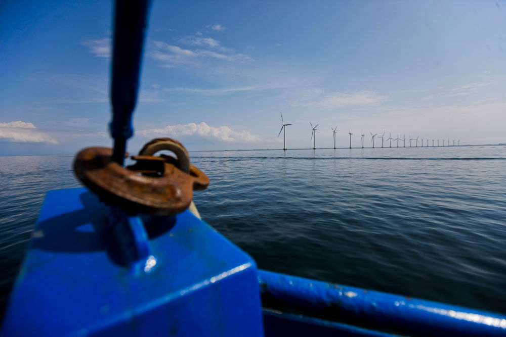 这是位于丹麦首都哥本哈根港口外的海上风力发电场,摄于2012年6月。(新华社记者周磊摄)