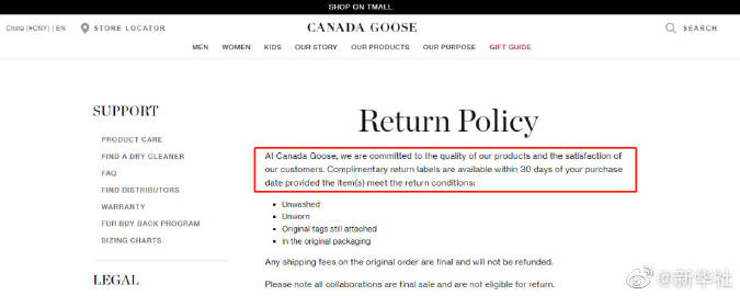 【#上海市消保委12月1日约谈加拿大鹅#】近日,加拿大鹅品牌“不得退换”的“霸王条款”引发舆论热议。12月1日,上海市消保委就加拿大鹅退换货条款的公平性和合理性问题约谈企业,发现加拿大鹅所表述的公司退换货流程与消费者反映的实际情况多有出入。同时,其全球官网上表述退换货政策为“30日无理由退货”,但参与约谈的相关负责人却表示,加拿大鹅并不在中国大陆执行这一条款,涉嫌“内外有别”。(记者周蕊)