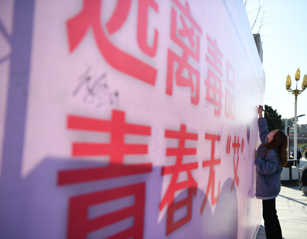 12月1日,湖南工商大学学生在校园内参加主题签名活动。新华社记者 薛宇舸 摄