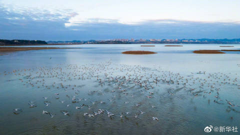 【#贵州草海迎来候鸟越冬高峰#】近期,位于贵州省威宁彝族回族苗族自治县的草海国家级自然保护区迎来候鸟越冬高峰,给冬日里的草海增添无限生机。