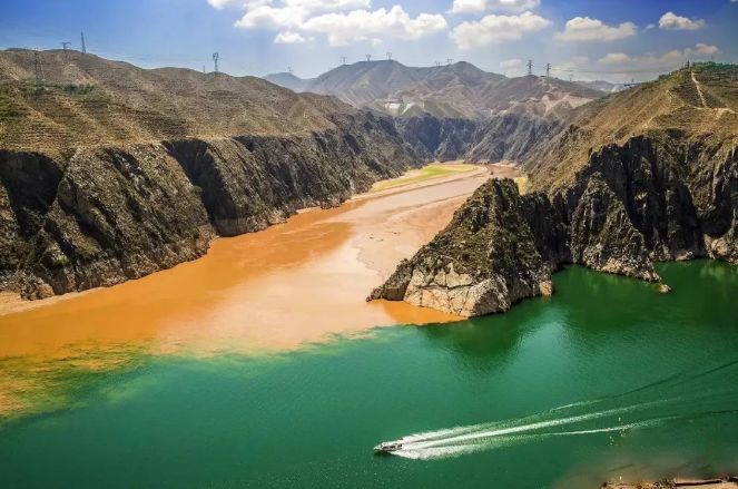这是我国的泾河和渭河。两河交汇处,两种颜色,完全不会互相渗透,各自流淌。