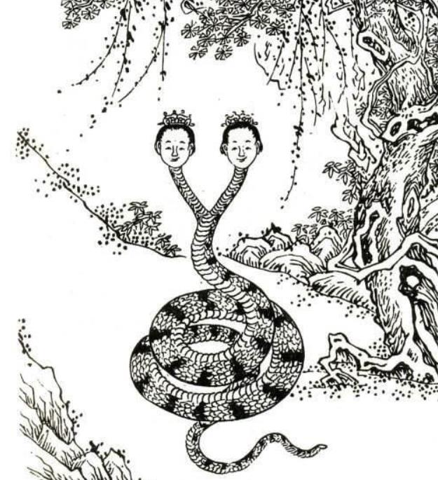 冯阿婆让李翠芳进屋拿出一条裁衣服用的木尺,狠狠地打在了那条双头蛇身上,那条双头蛇就死了。