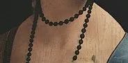 长长的黑珍珠项链绕过修长的脖颈;她身上的深蓝色衣料散发出美丽的光泽,这种颜料提取自阿富汗青金石,要花上几个月才能运到欧洲,再研磨成粉。