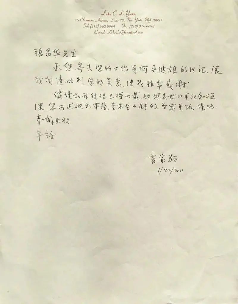 我写《物理女皇吴健雄》一文,是托顾毓琇先生代将文稿转给袁家骝先生的。文中我写了吴健雄青年时期的几位男友,这纯属隐私。我忧心袁先生见之不悦,没料到家骝先生热情来信表示: