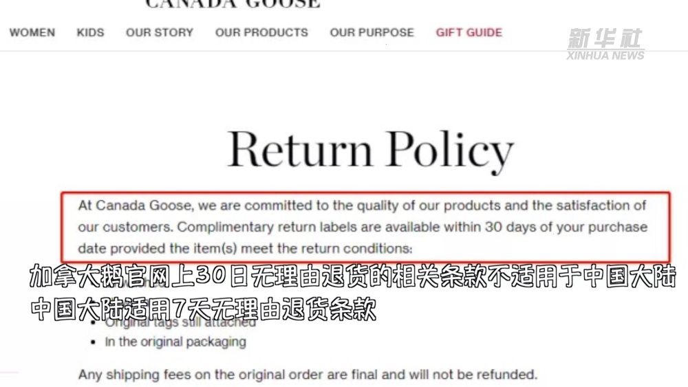 在加拿大鹅全球官网上,其退换货政策为“30日无理由退货”,但在中国市场上,却一派“霸王嘴脸”。有意思的是,舆论发酵后,加拿大鹅12月1日上午发布的声明称,这一条款的含义为“在符合相关法律规定的情况下,所有中国大陆地区专门店售卖的产品可以退货退款”,似乎企图通过“文字游戏”的方式脱身。在与上海市消保委的约谈中,加拿大鹅方面所表述的退换货流程与消费者反映的实际情况,也差距甚远。