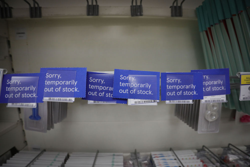 ↓这是11月24日在英国伦敦一家超市拍摄的缺货提示牌。