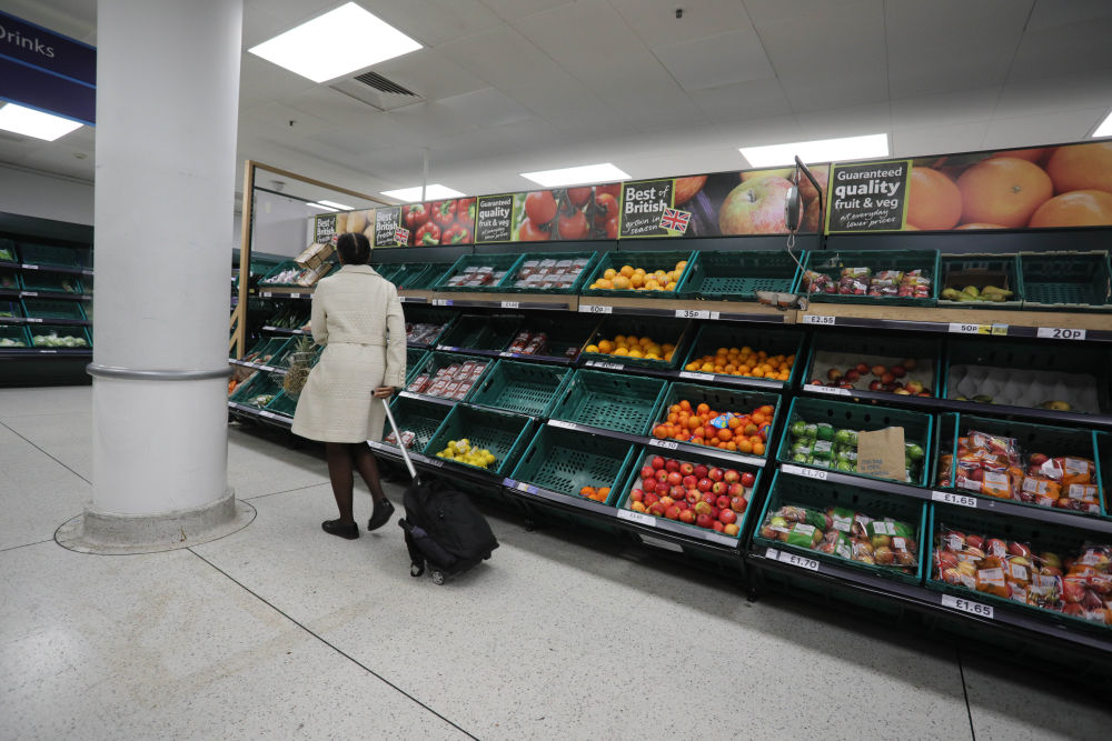↓这是11月24日在英国伦敦一家超市拍摄的缺货的水果货架。