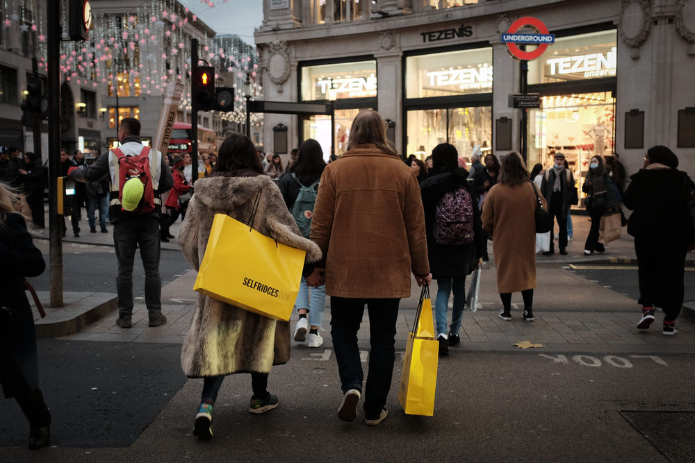 ↓11月24日,人们提着购物袋走在英国伦敦市中心的牛津街。