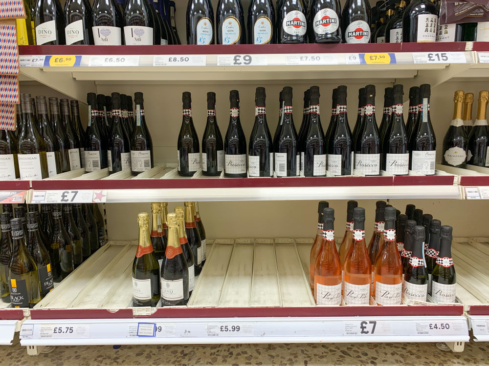 ↓这是11月29日在英国贝辛斯托克一家超市拍摄的缺货的酒类货架。