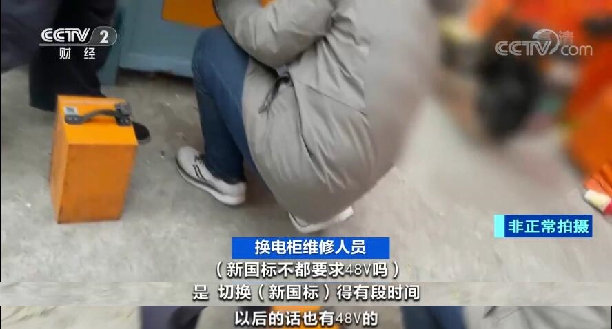 目前,大部分快递外卖从业者为了提高工作效率,大多都在租用换电柜提供的电池。不少快递外卖从业者告诉记者,虽然新规落地快一个月了,但是目前不少换电柜提供的却依旧是超标电池。