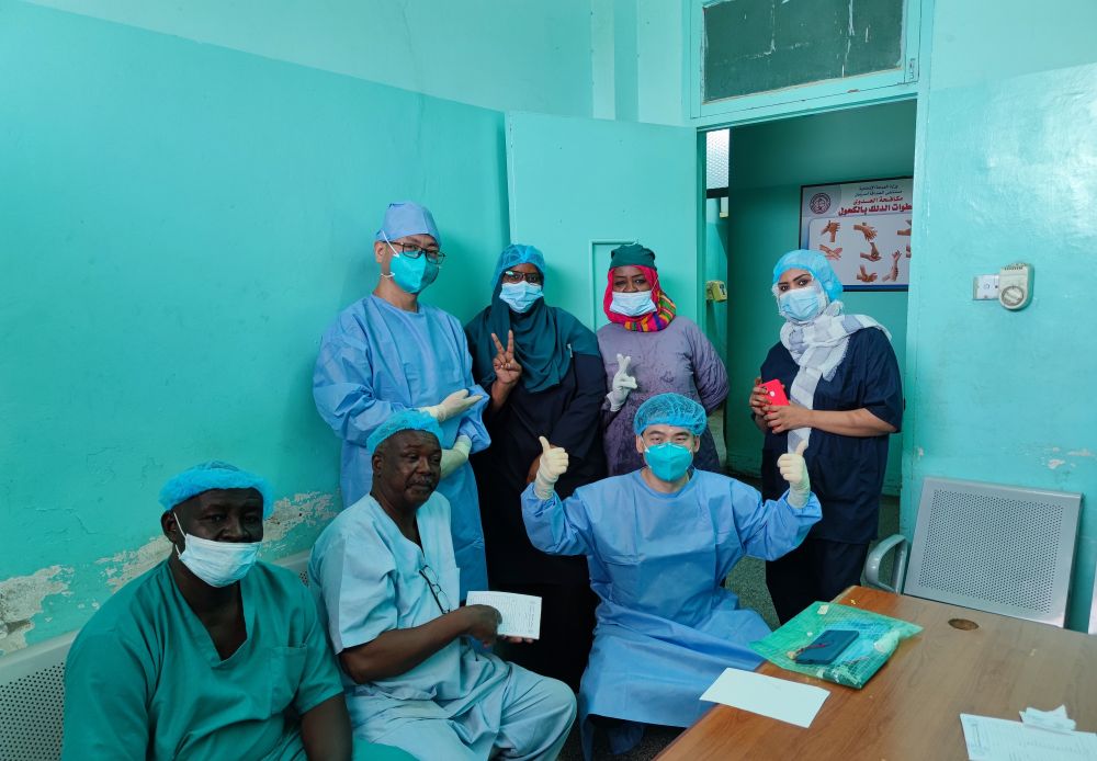 中国(陕西)第36批援苏丹医疗队医生在手术间隙合影。(医疗队供图)