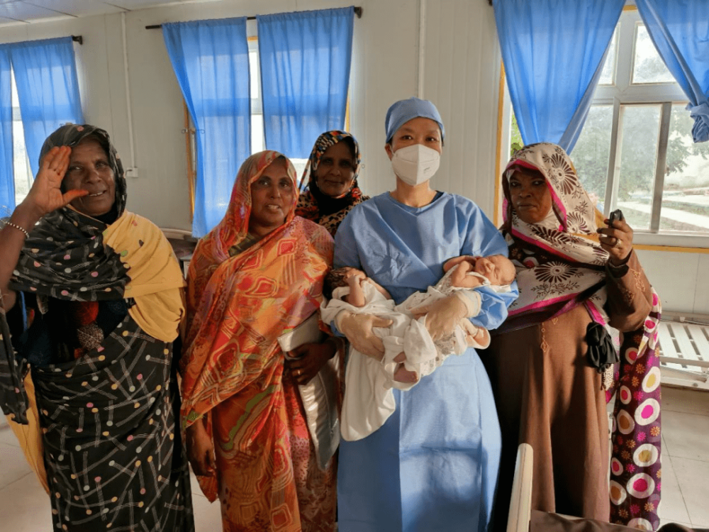 中国(陕西)第36批援苏丹医疗队医生怀抱新生儿。(医疗队高红敏供图)