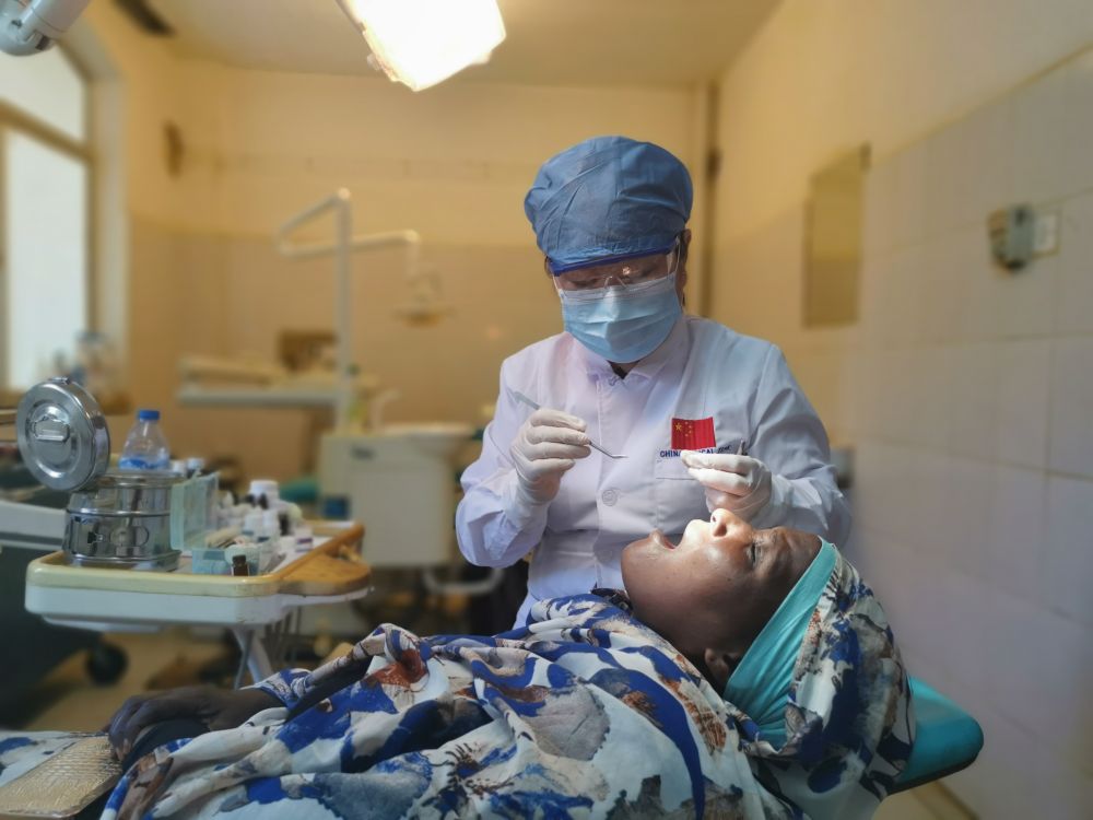 中国(陕西)第36批援苏丹医疗队医生为当地病患诊疗。(医疗队供图)