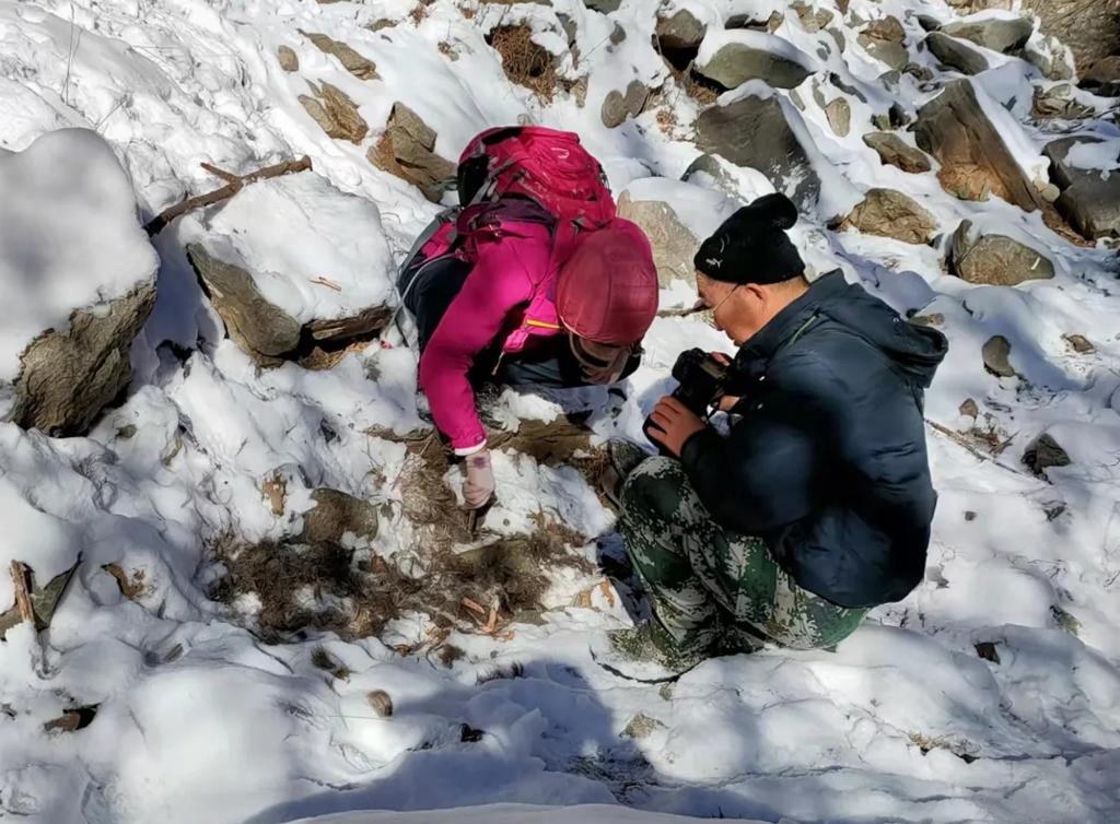 11月30日,专业技术人员在贺兰山内蒙古段水沟子附近发现疑似雪豹捕食岩羊后留下的残骸。(受访单位供图)